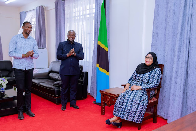 Rais wa Jamhuri ya Muungano wa Tanzania, Mhe. Dkt. Samia Suluhu akikata utepe kuashiria ufunguzi wa Jengo la Ofisi ya Mkuu wa Mkoa wa Simiyu lililopo Bariadi tarehe 16 Juni, 2025.